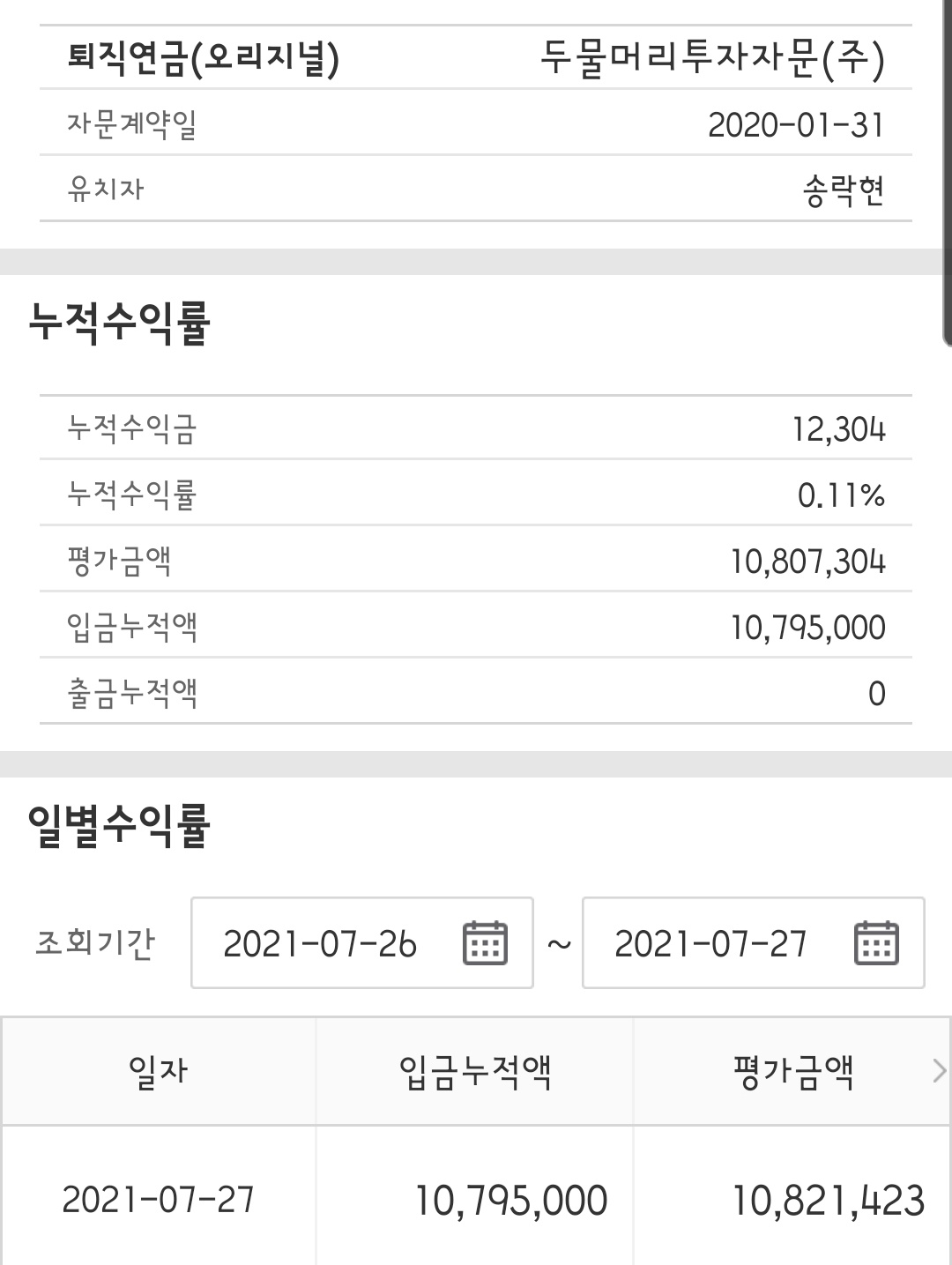 2021.7월 불리오 자문계약 수익률 후기(연금저축, 퇴직연금)